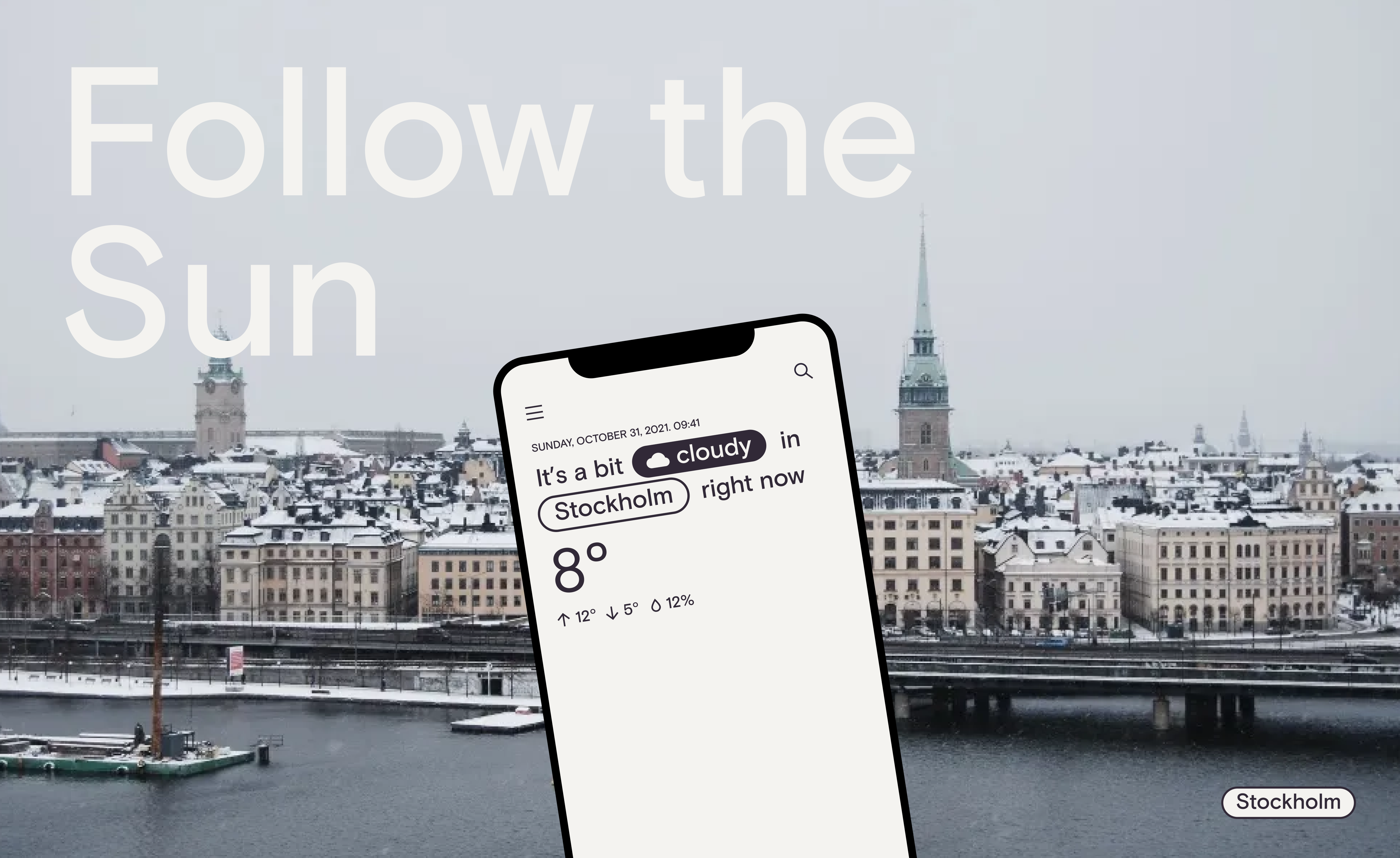 Follow the Sun would help locals to prepare for coming times of sunshine. Users can get notified for coming sunshine while it’s grey and get suggestion of things to do in town when it is sunny.