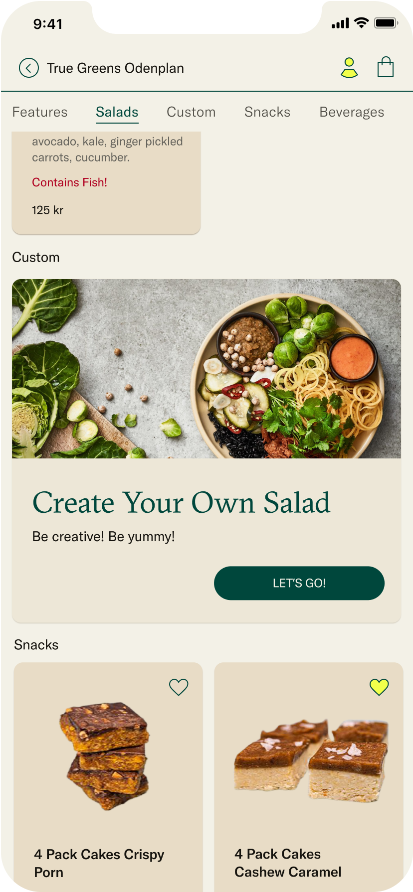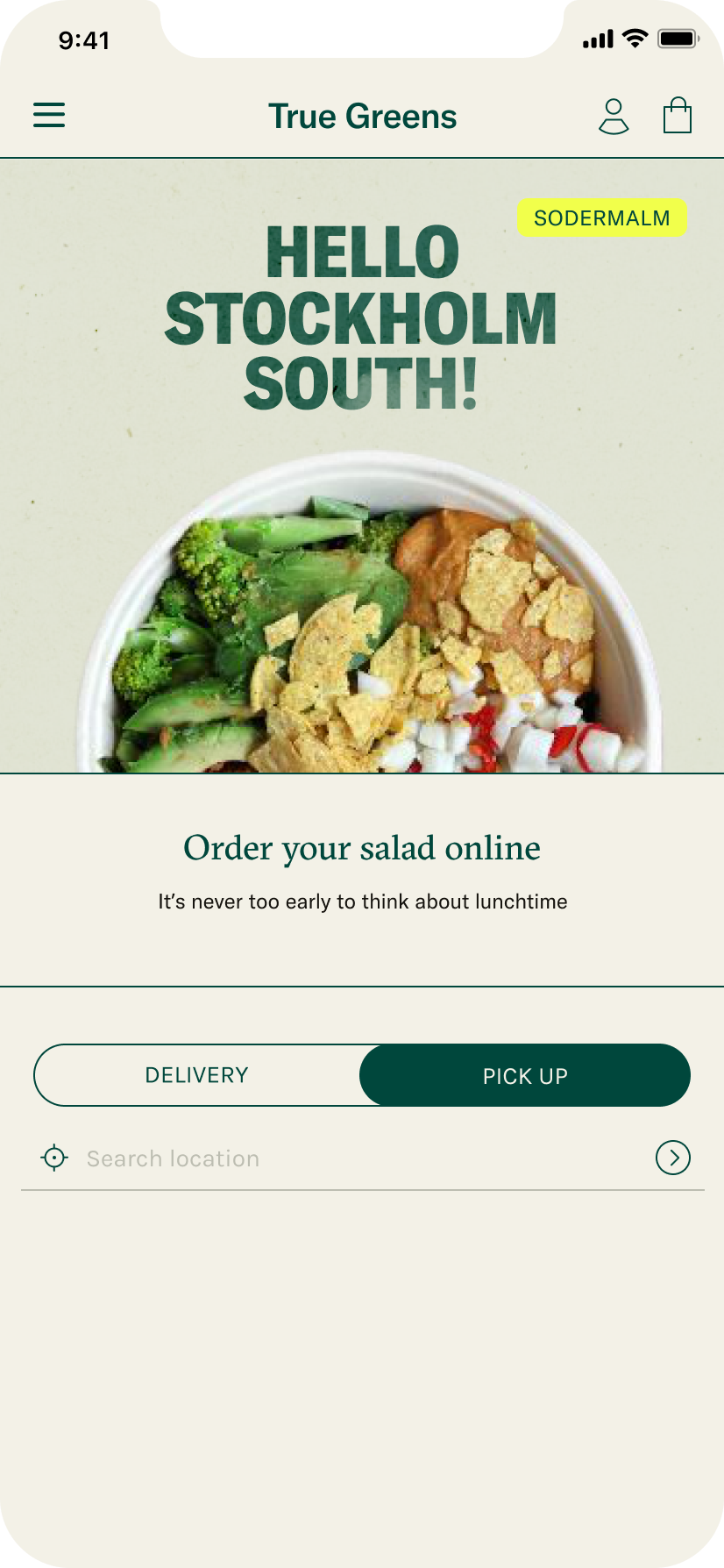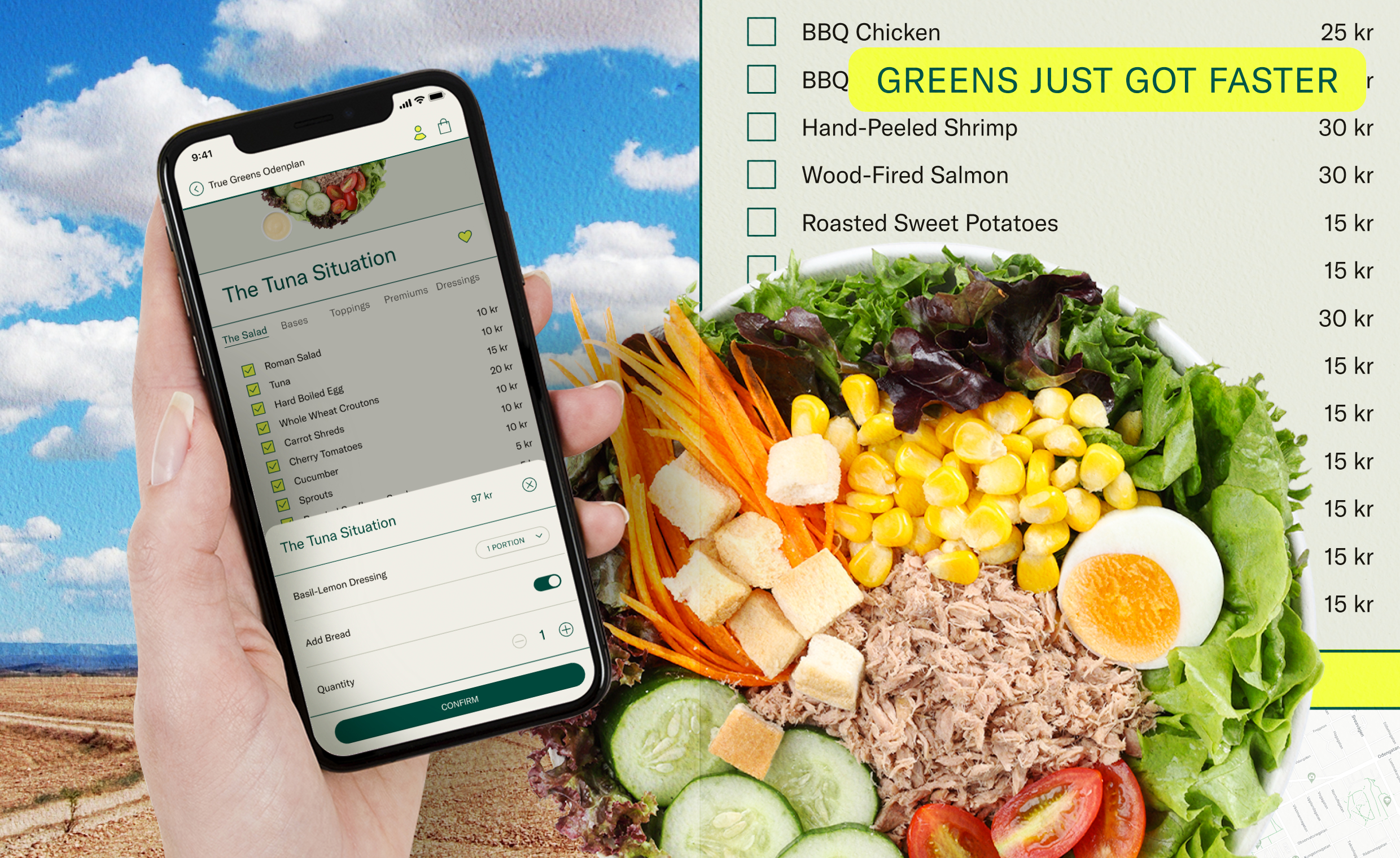 True Greens is an order app for True Greens salad bars in Stockholm, aiming to provide easy ordering of salads and drinks in a quick and convenient way.