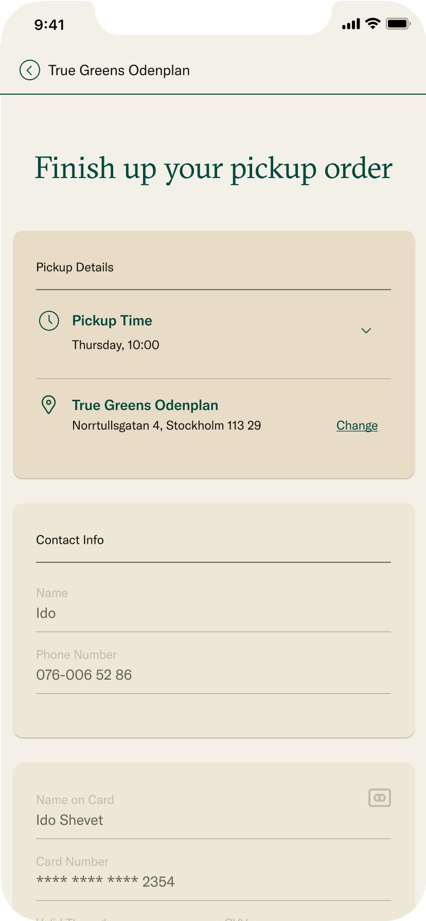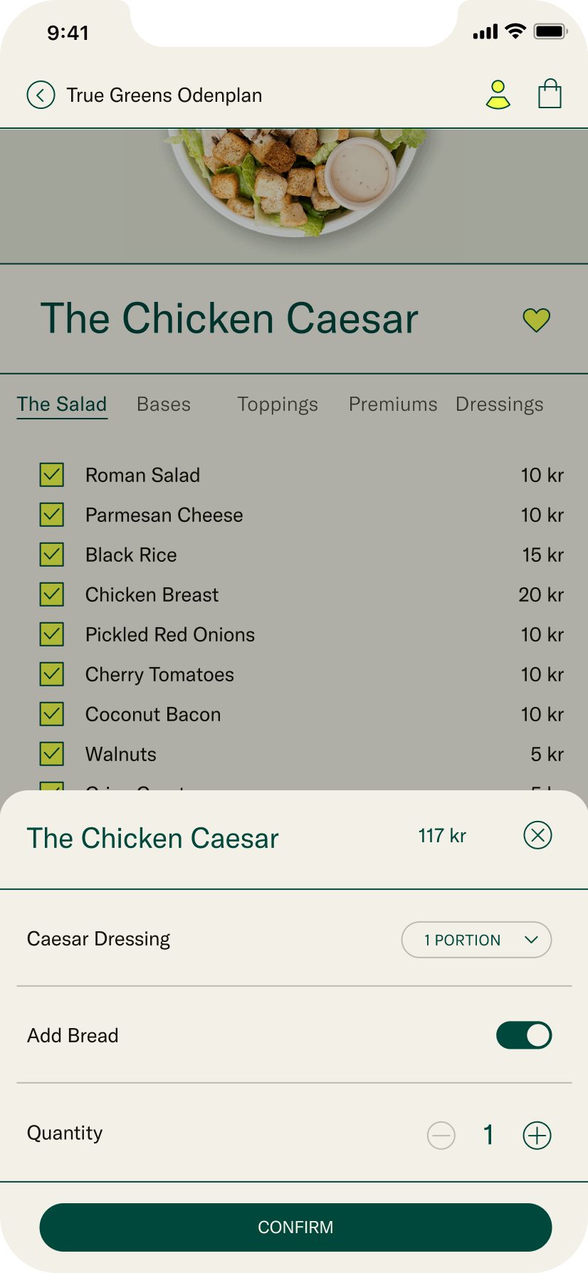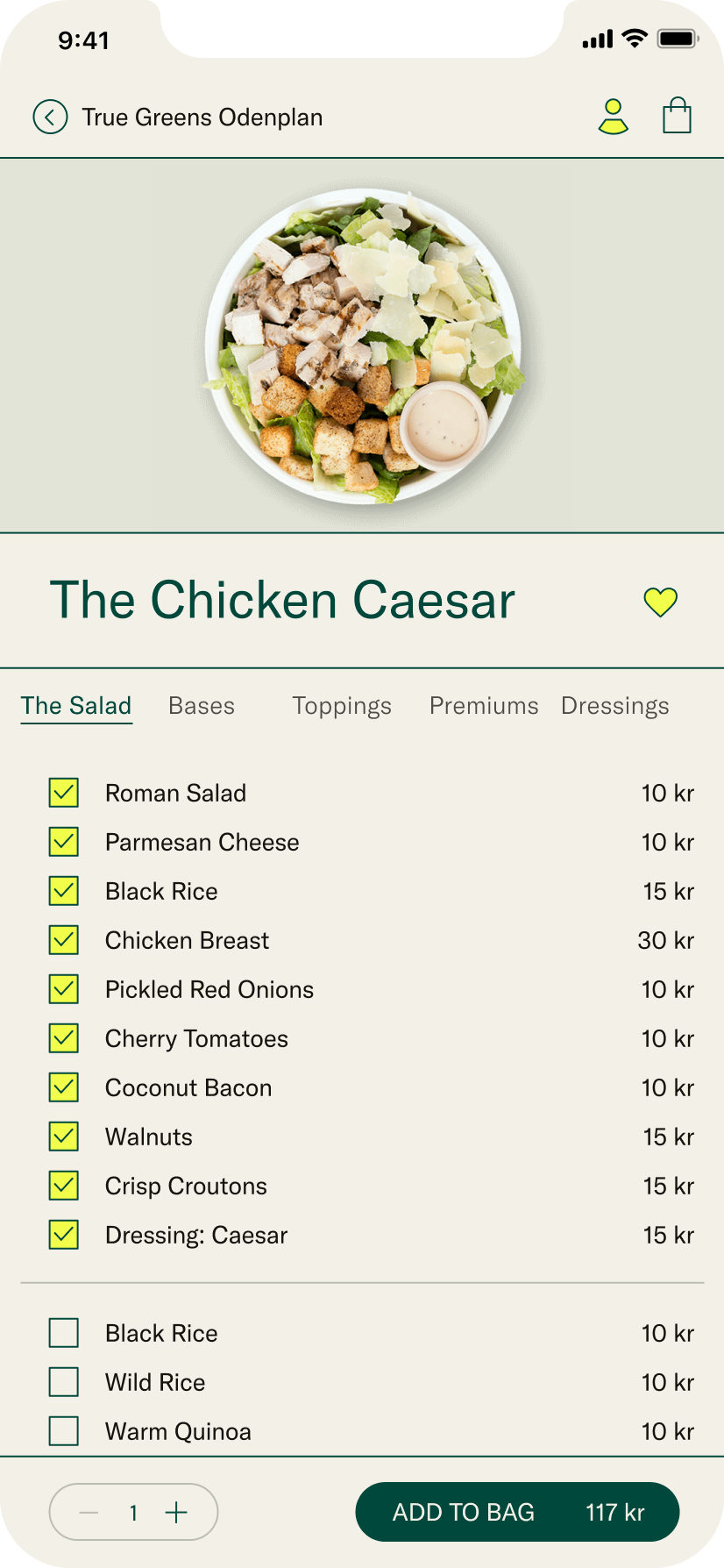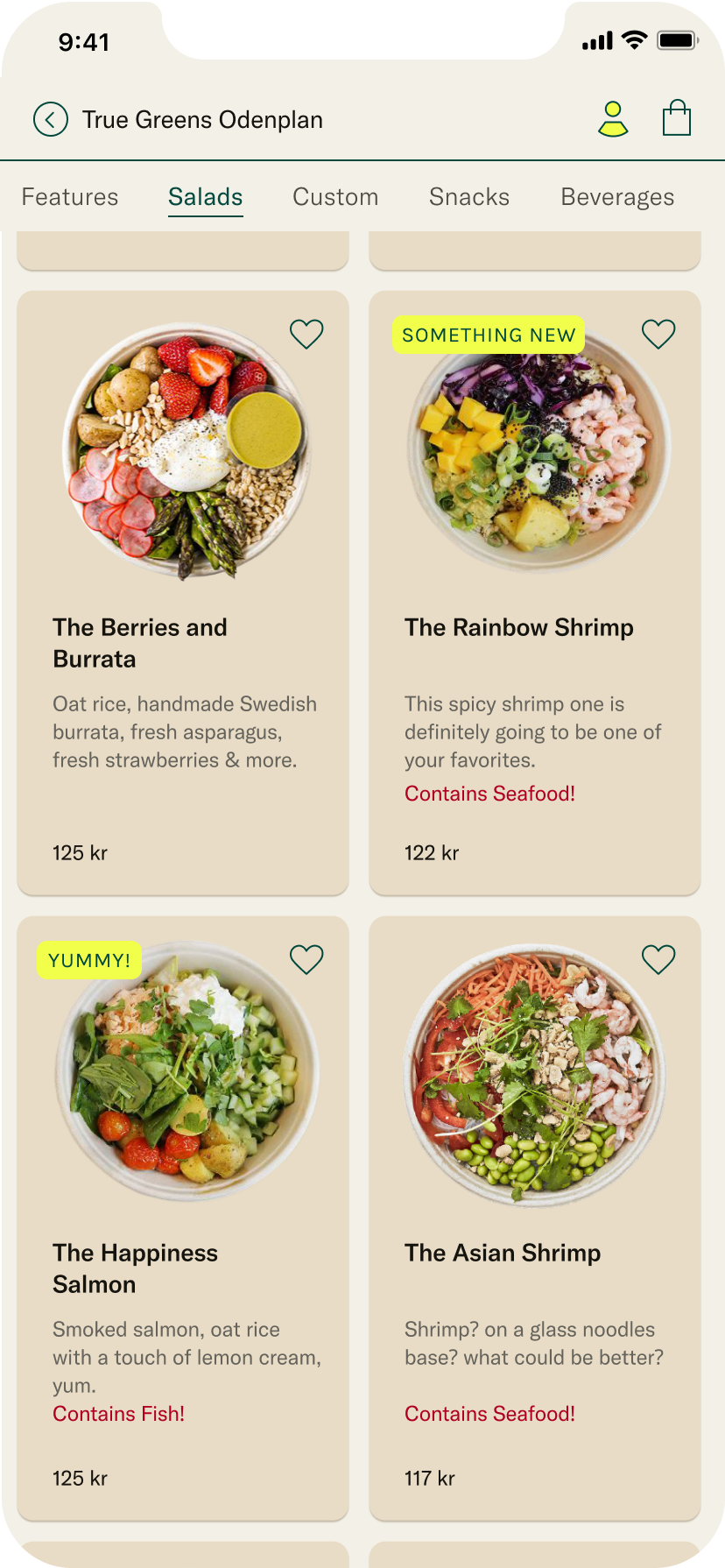 True Greens is an order app for True Greens salad bars in Stockholm, aiming to provide easy ordering of salads and drinks in a quick and convenient way.