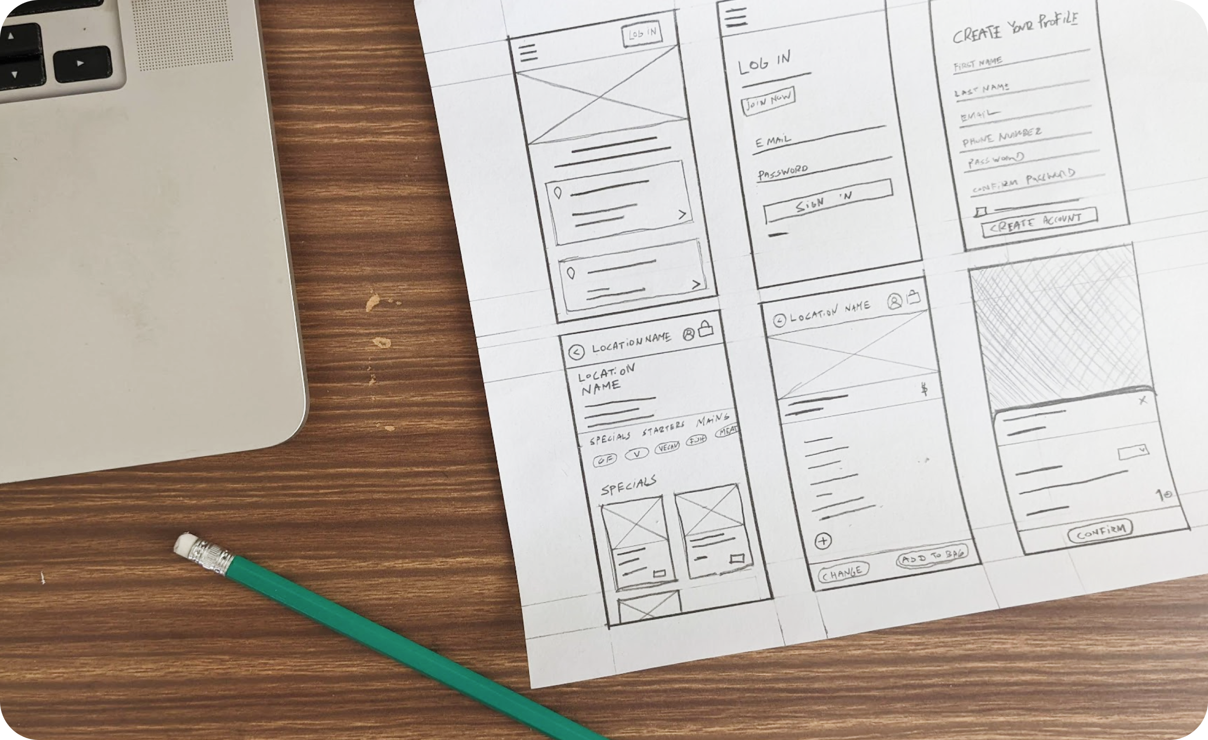 A layout of True Greens’ app that demonstrates what interface elements will exist on key pages was created for users to review it, as an early feedback mechanism for usability tests.